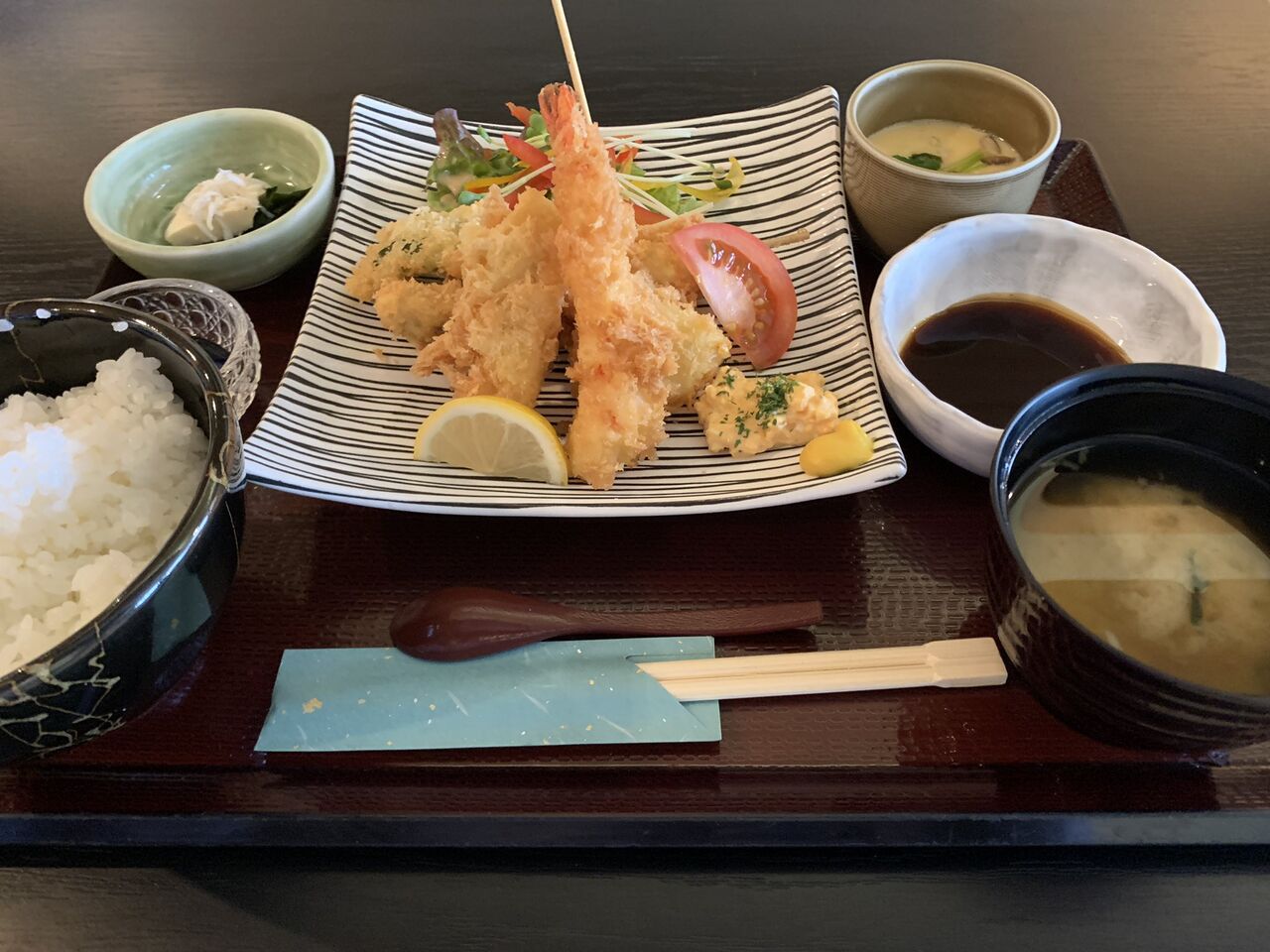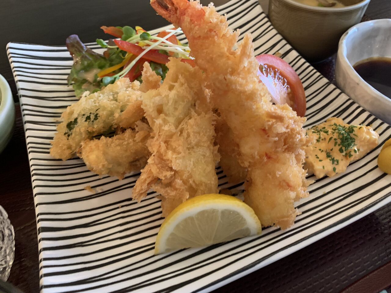 2021年06月08日 【日替り・ミックスフライ定食】6/8(火) 本日 11時~20時の通し営業 おはようございます。川越市「和食処まどい」本日 6/8(火)午前11時~午後8時までの通し営業(19時30分 L.O)となります。川越市が緊急事態宣言に準じる「まん延防止等重点措置」の対象区域となった事を受けて酒類の提供は、終日提供ございません。本日の日替わりは「ミックスフライ定食」です。コーヒー・デザート付1000円(税込)こちらの画像は前回のミックスフライ定食です。※内容は変わる場合がございます。本日もお客様のお越しをお待ち申し上げております。