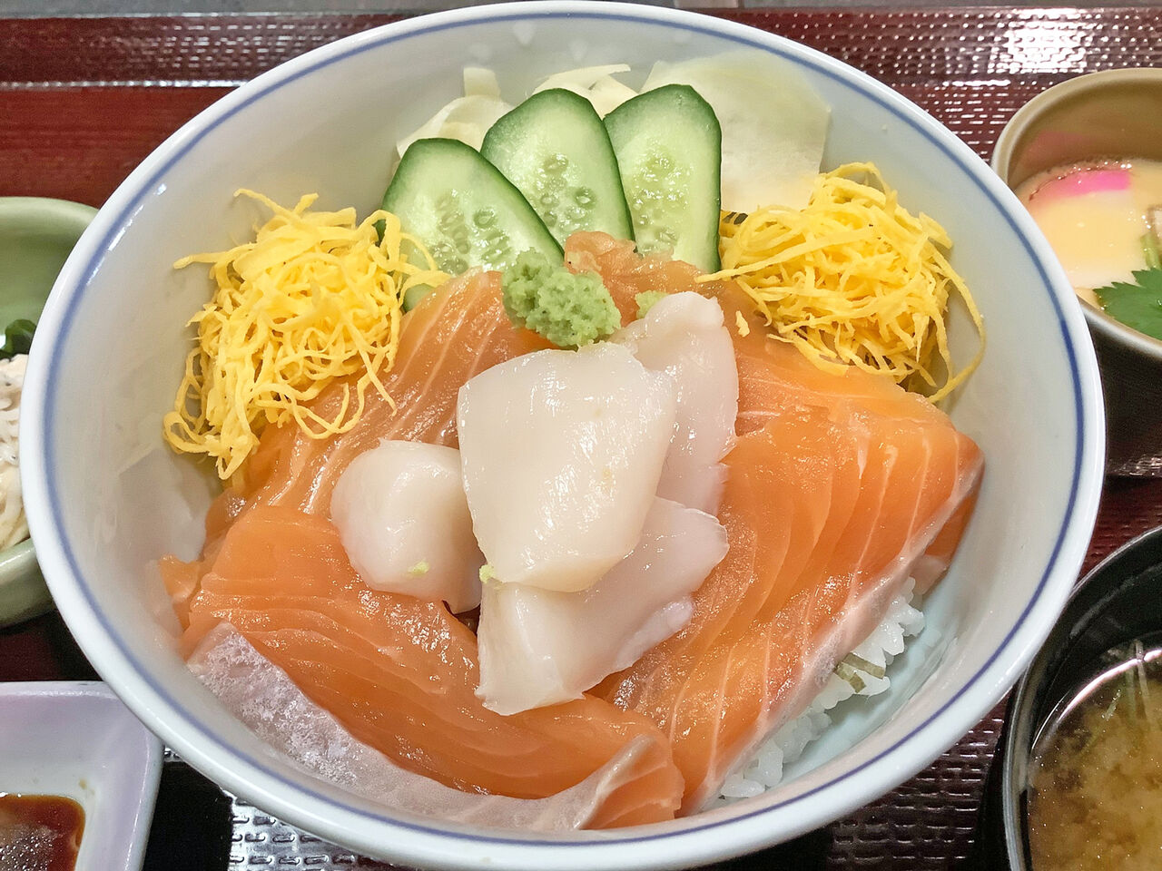 2021年06月11日 【日替り・サーモンと 帆立の二色丼】6/11(金) 本日 11時~20時の通し営業 おはようございます。川越市「和食処まどい」本日 6/11(金)午前11時~午後8時までの通し営業(19時30分 L.O)となります。川越市が緊急事態宣言に準じる「まん延防止等重点措置」の対象区域となった事を受けて酒類の提供は、終日ございません。本日の日替わりは「サーモンと 帆立の二色丼」です。コーヒー・デザート付1000円(税込)=====こちらは単品のお寿司。少しお高めですが一度召し上がっていただければ納得いただけるはず^^本日もお客様のお越しをお待ち申し上げております。