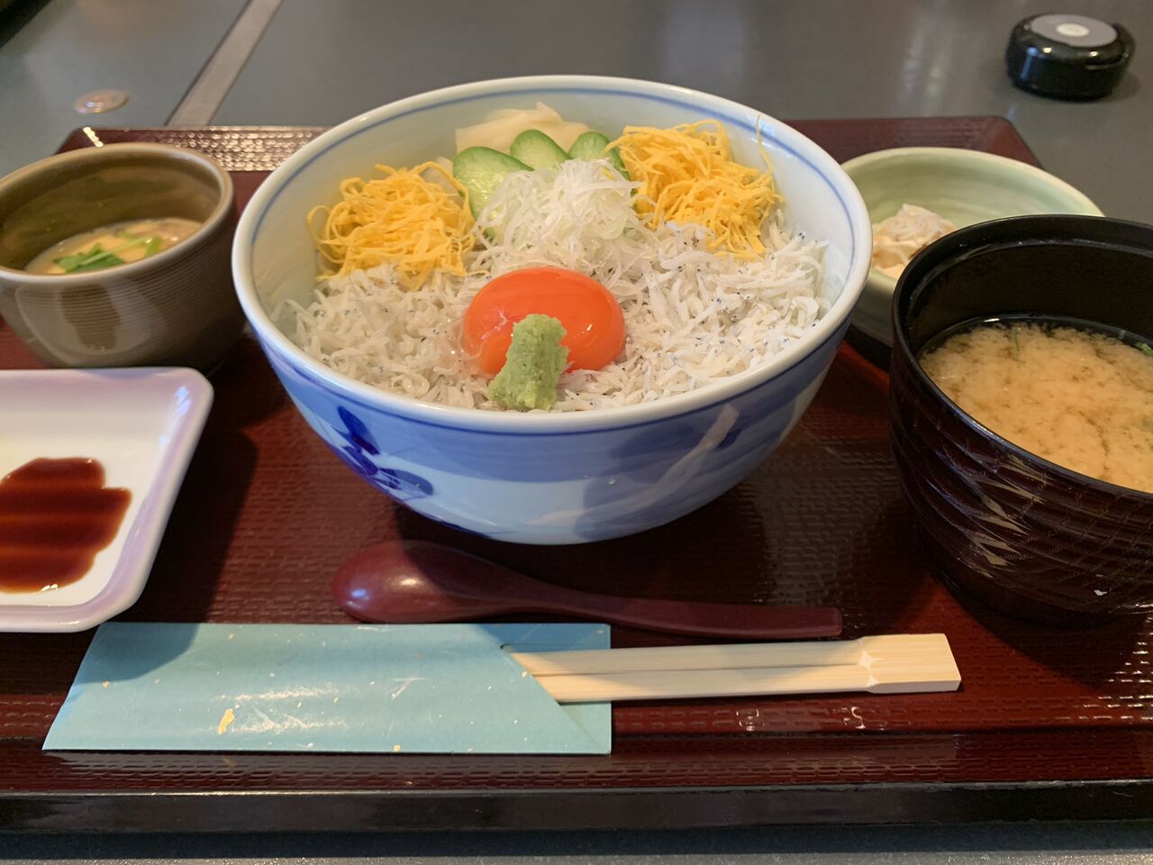 2021年06月10日 【日替り・しらす丼 黄身のせ】6/10(木) 本日 11時~20時の通し営業 おはようございます。川越市「和食処まどい」本日 6/10(木)午前11時~午後8時までの通し営業(19時30分 L.O)となります。川越市が緊急事態宣言に準じる「まん延防止等重点措置」の対象区域となった事を受けて酒類の提供は、終日提供ございません。本日の日替わりは「しらす丼 黄身のせ」です。コーヒー・デザート付1000円(税込)=====こちらは単品「野菜天」と「お蕎麦」 本日もお客様のお越しをお待ち申し上げております。